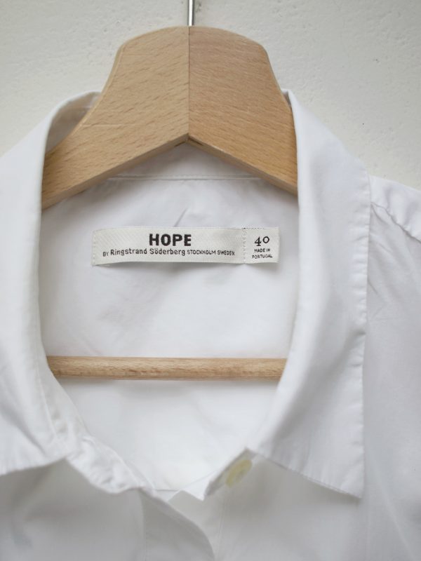 Koszula o pudełkowym fasonie. Ekskluzywna skandynawska marka Hope Stockholm, cena katalogowa po przecenie 108 eur. Wyprodukowana w Portugalii Rozmiar z metki: 40 Skład: 100% bawełna Stan: bez wad Szerokość w klatce 52 cm Długośćcałkowita 65 cm