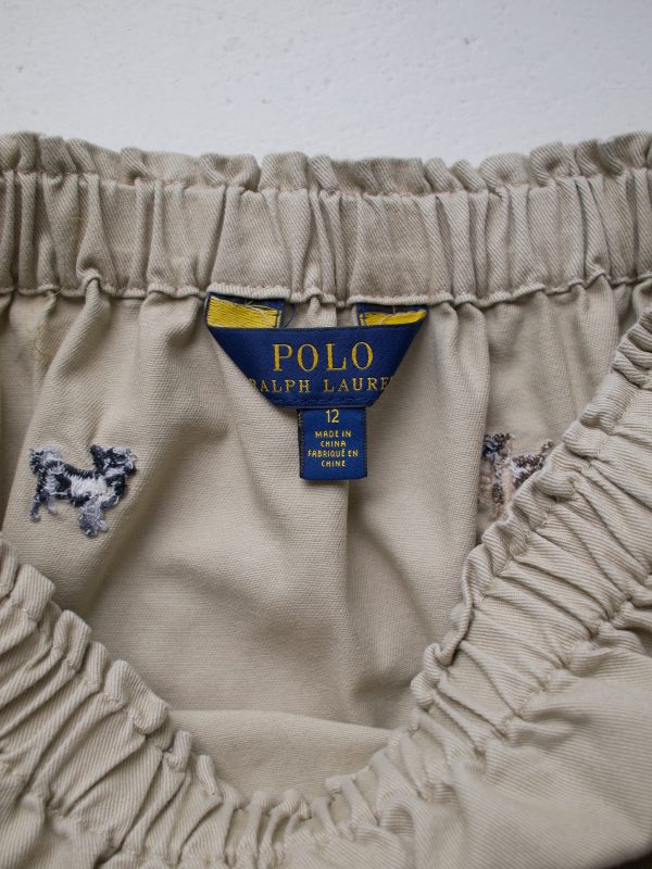 Dziecięca spódniczka renomowanej marki Ralph Lauren. W pasie elastyczna gumka, boczne kieszenie. Rozmiar z metki: 12 Skład: 100% bawełna Stan: bez wad Szerokość w pasie 29-36 cm Długość całkowita 40 cm