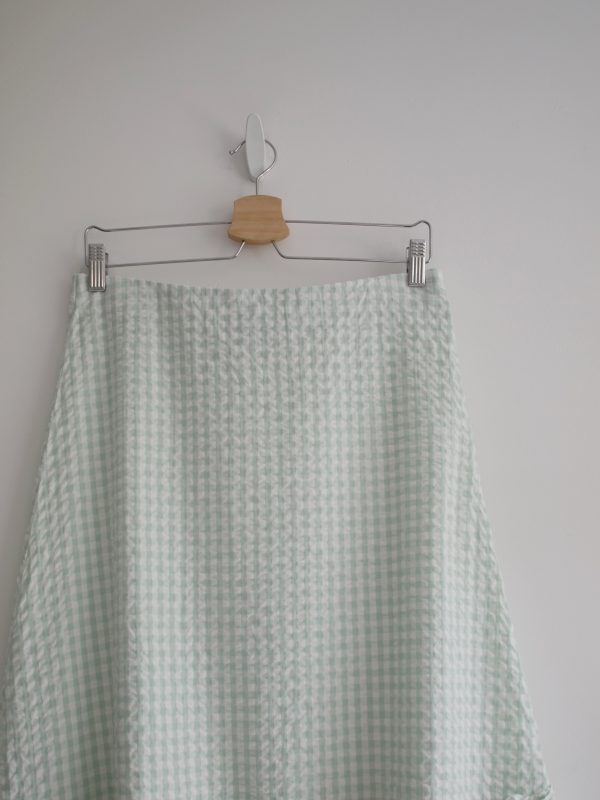 Spódnica w pastelowym kolorze, w 100% wykonana z muślinowej bawełny.