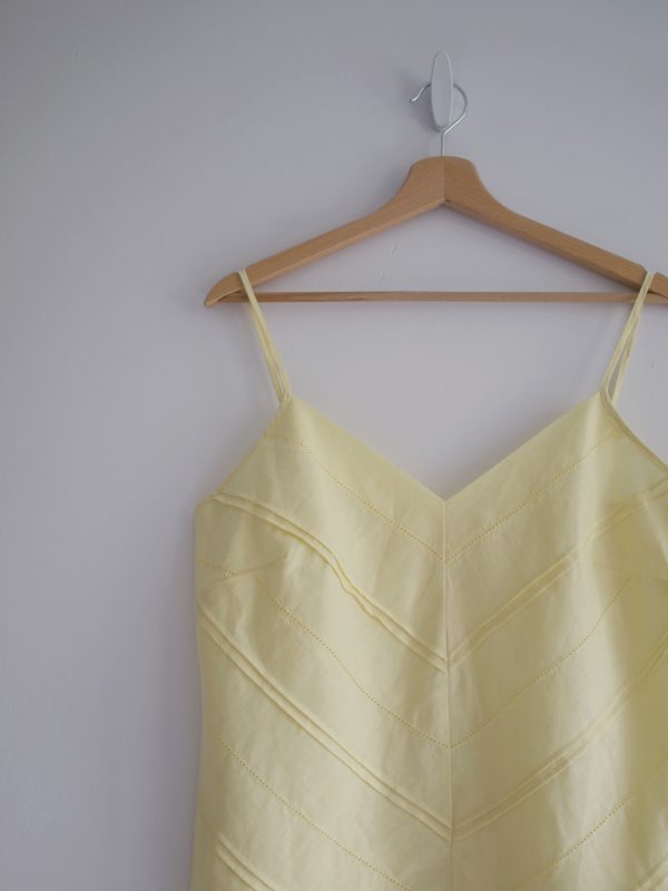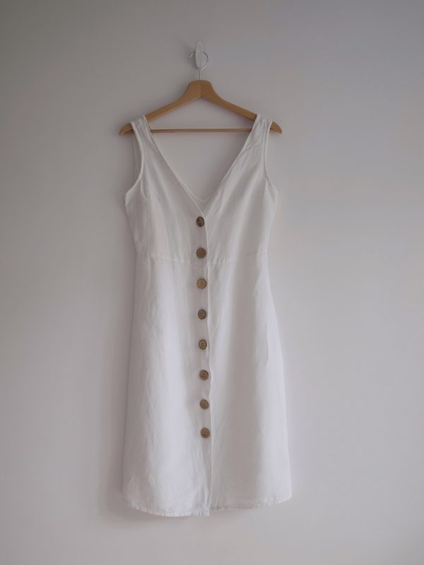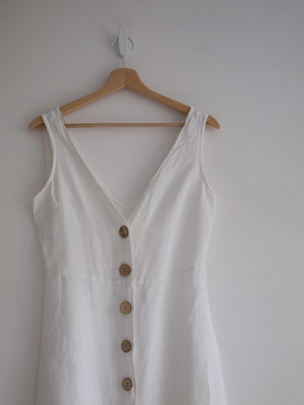 Minimalistyczna sukienka, wykonana z mieszanki lnu oraz wiskozy.