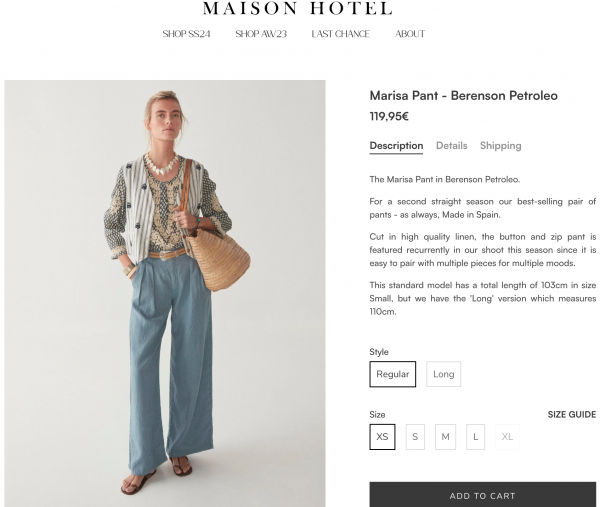 Spodnie o kroju palazzo, w 100% wykonane z lnu. Marka Maison Hotel ,model Marisa, dostępny na stronie w cenie 120 euro, czyli ponad 500 zł.