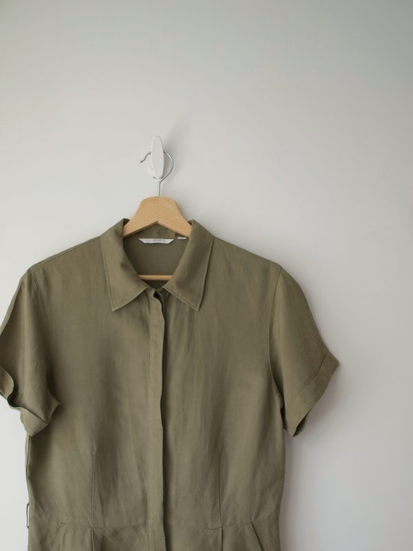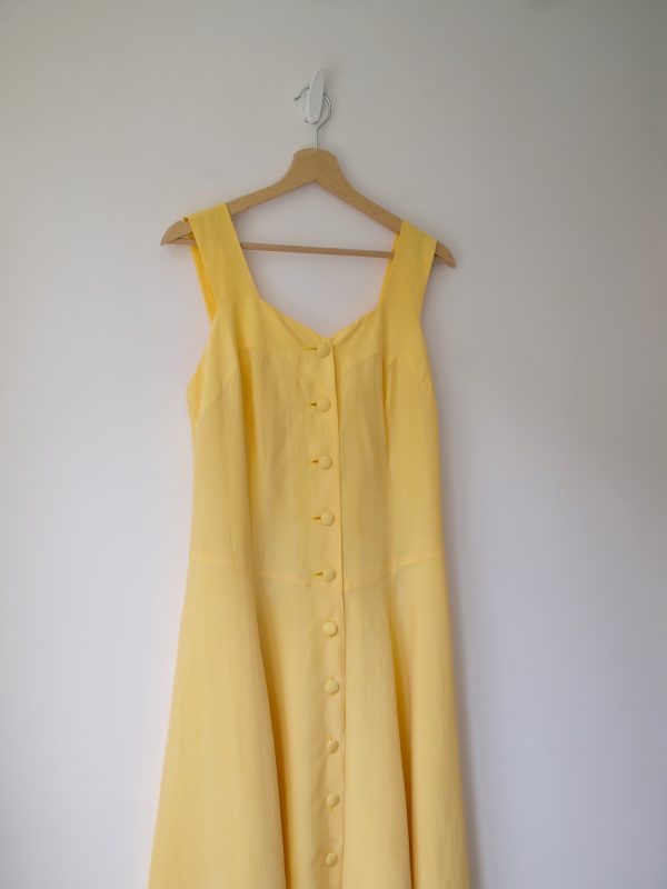 145,00 złSukienka vintage, w 100% wykonana z bardzo miłego w dotyku cupro. Zapinana na guziki powlekane tkaniną, z podszewką.