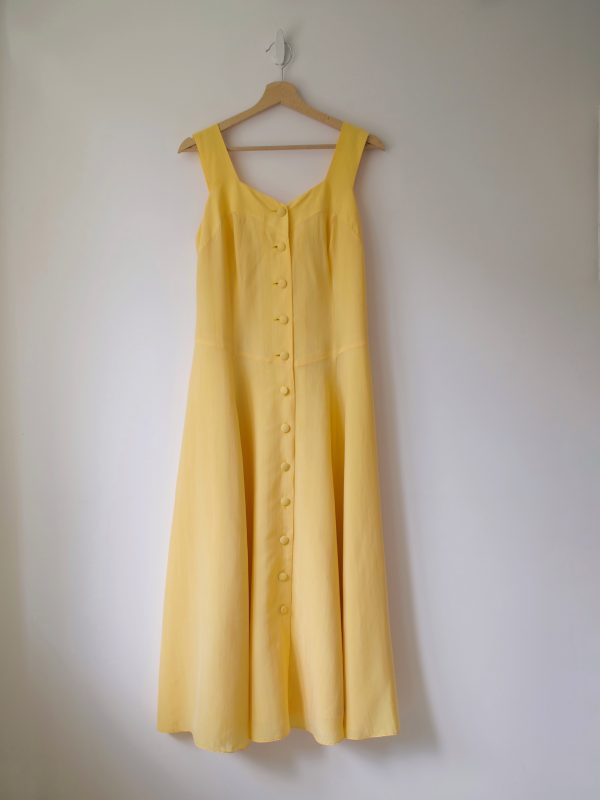145,00 złSukienka vintage, w 100% wykonana z bardzo miłego w dotyku cupro. Zapinana na guziki powlekane tkaniną, z podszewką.