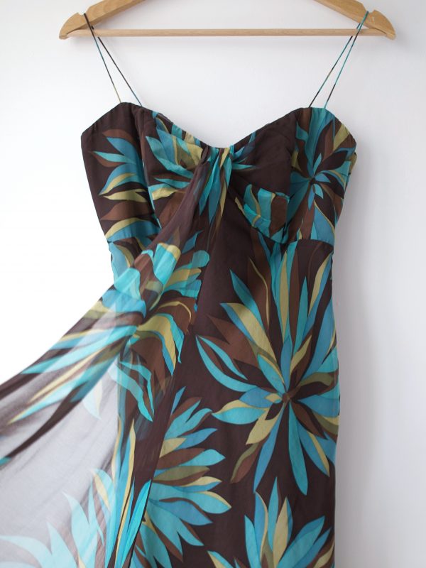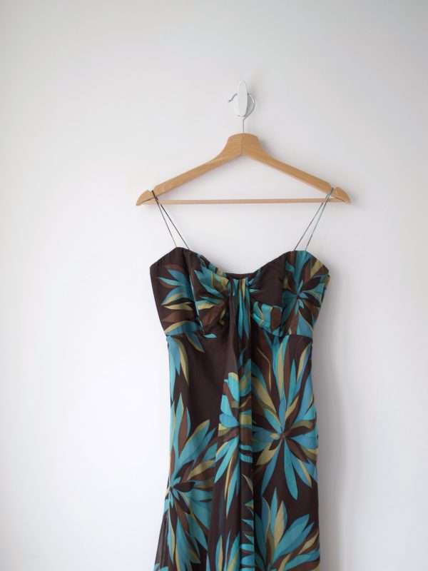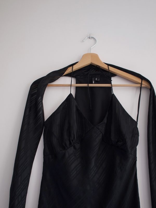 175,00 zł105,00 złJedwabna sukienka wieczorowa. Dekolt wykończony ramiączkami, które są zawiązywane na szui, tył z długą szarfą, która może być wiązana na różne sposoby. Z podszewką.