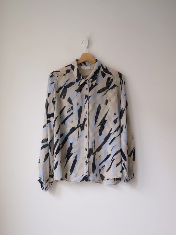 150,00 złBluzka luksusowej duńskiej marki By Malene Birger. Wykonana z dwuwarstwowego jedwabnego szyfonu. Bufiastr rękawy, dekolt zapinany na sygnowane guziki. Na jednym rękawie ma malutkie uszkodzenie materiału, nie jest widoczne i nie przeszkadza w noszeniu (ostatnie zdjęcie)