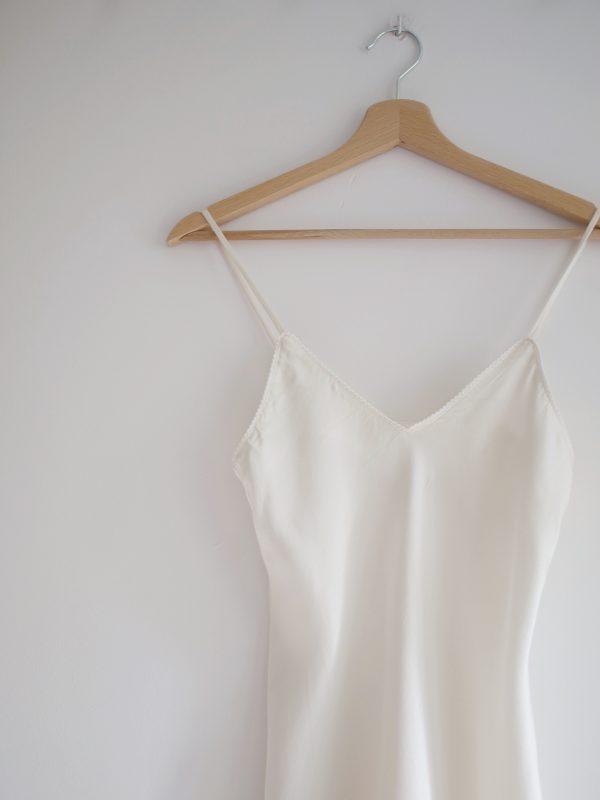 Koszula nocna duńskiej marki Lady Avenue, może być noszona jako sukienka. W 100% wykonana z wysokogatunkowego jedwabiu w kolorze ecru. Model jest dostępny na stronie w innych kolorach w cenie 593 zł.
