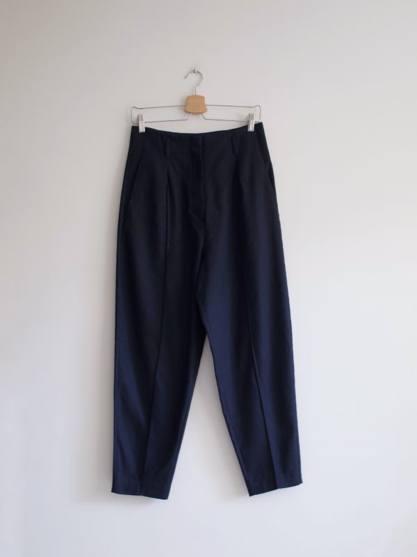 300,00 złGranatowe spodnie o luźnym fasonie, skandynawska marka COS. Model pochodzi z aktualnej kolekcji, i jest dostępny na stronie w cenie 125 euro. Spodnie z wysokim stanem. szerokimi nogawkami, można zaprasować na kant.