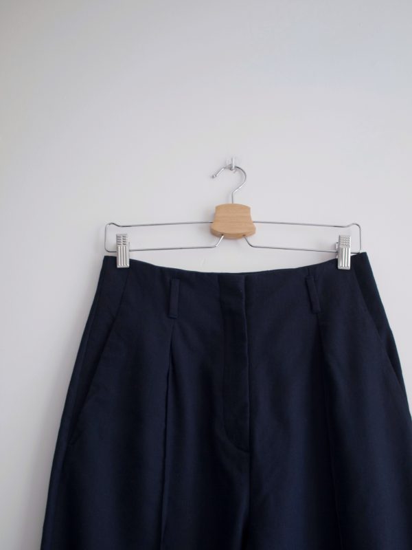 300,00 złGranatowe spodnie o luźnym fasonie, skandynawska marka COS. Model pochodzi z aktualnej kolekcji, i jest dostępny na stronie w cenie 125 euro. Spodnie z wysokim stanem. szerokimi nogawkami, można zaprasować na kant.